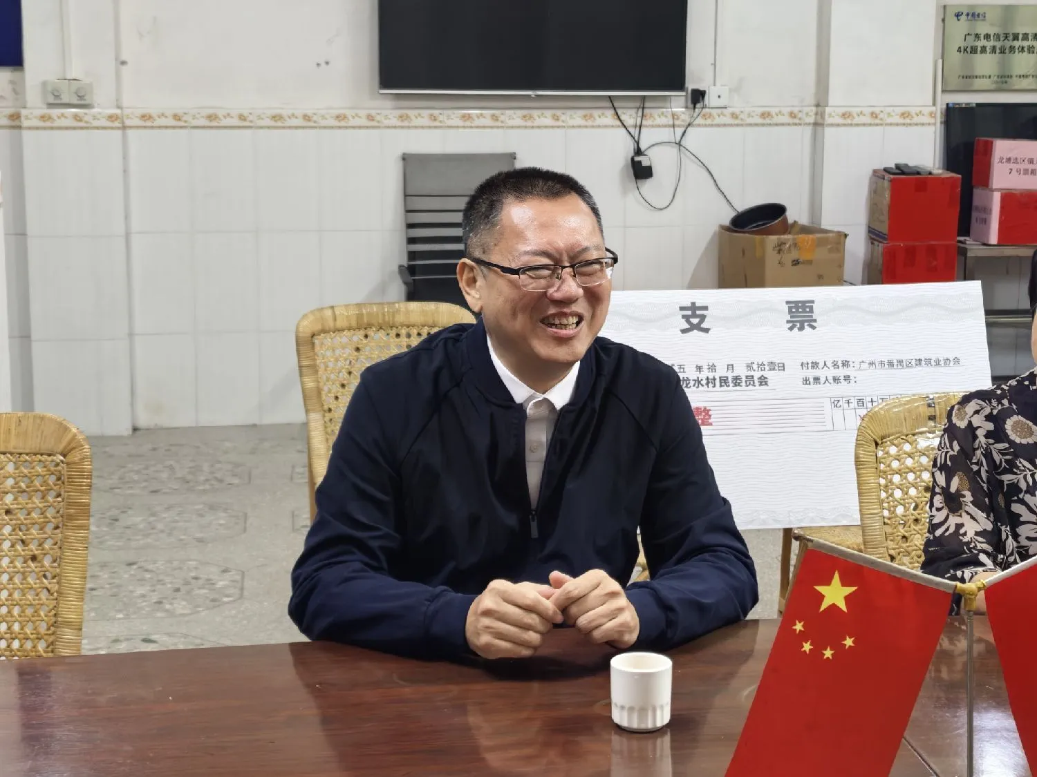 调研期间番禺区建筑业协会通过建筑业慈善基金,向龙水村捐赠10万元,专项用于"亮光工程"等乡村振兴项目。这笔善款将化作一盏盏温暖的路灯,照亮龙水村的夜晚,温暖村民的心田,提升村民的幸福感和获得感。