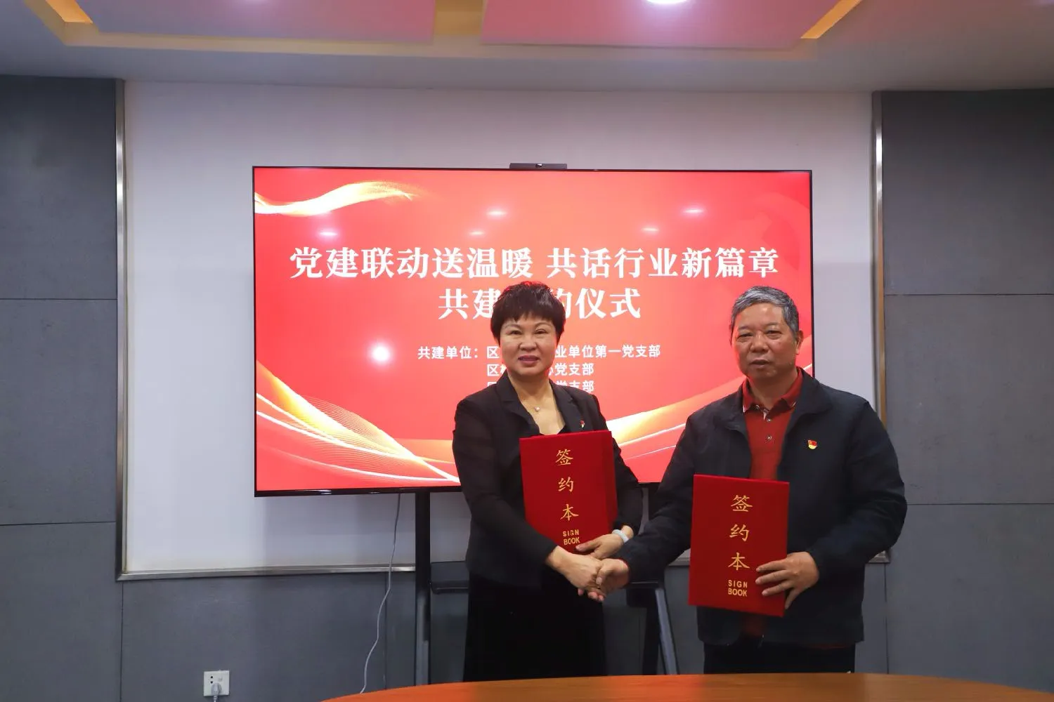 随后,区住建局事业单位第一党支部、区检测中心党支部分别与区建筑业协会联合党支部签订了《党建共建协议书》。协议明确,将以“平等协商、优势互补、务求实效、围绕中心”为原则,通过组织共建、活动共联、业务共促、资源共用等形式,定期开展党建工作交流、联合主题党日、专题研讨等活动,共享党建与行业资源,切实提升基层党组织凝聚力与战斗力,共同破解行业发展难题,助力建筑业持续健康发展。
